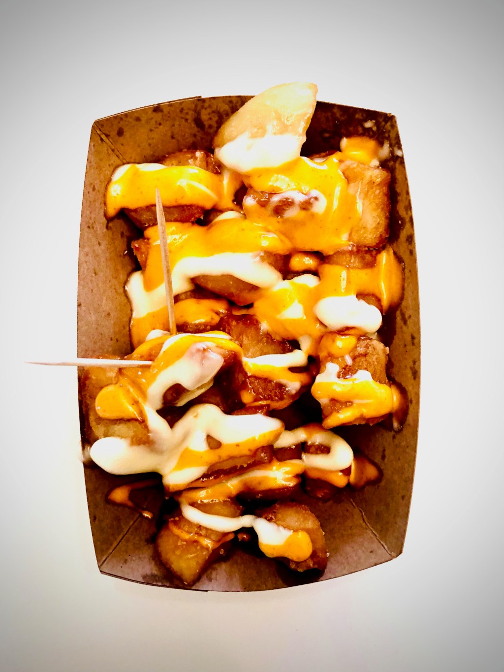 Bravas serves up an order of their thrice fried potatoes with both ‘Bravas sauce’ (that aforementioned spicy orange-red sauce) and aioli for only $5.50, making it a brilliantly affordable snack or reasonably priced side dish to go along with a yummy smash burger or tricked-out hotdog. In my experience, how they serve the dish to you can vary. Sometimes, I’ve gotten my order with my patatas already loaded up with both sauces, but other times I’ve received both sauces in separate, small, plastic containers, which allows me to dip the patatas and have a heightened control of my sauce ratios. Truly, both options are flawless; I’m never disappointed either way. As long as I’m eating Patatas Bravas, I’m a happy girl.