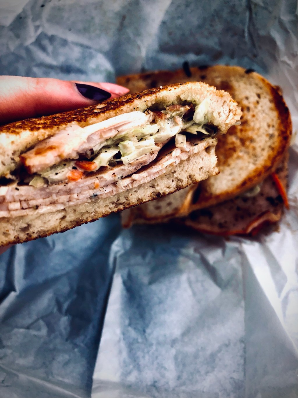 With that said, I’ll make two observations and you may personally decide whether or not these things are positives or negatives. First and foremost, the menu noted that my sandwich would have “apple shreddies.” The word shreddies puts me in mind of, perhaps, a thin, matchstick-like cut. I expected thin, crisp strips of apple on my sandwich. I received a sandwich that had small chunks of apple. In terms of texture while eating, there was nothing unpleasant about it; I very much enjoyed the sandwich. But, when I’m told I’ll receive one thing and get something else, it feels worth noting. Lastly, the grilled sourdough bread was grilled quite dark. By my standards, it was bordering on blackened. Someone with more exacting standards may have felt the bread was slightly burnt. Do I think this dark color on the bread gave it excellent flavor? Yes. Do I wish they had not grilled it quite so much? Honestly, no; I enjoyed my sandwich exactly as it came to me! On subsequent visits, my sandwiches have not been quite so deeply toasted–and they’re still exceptional every time.
