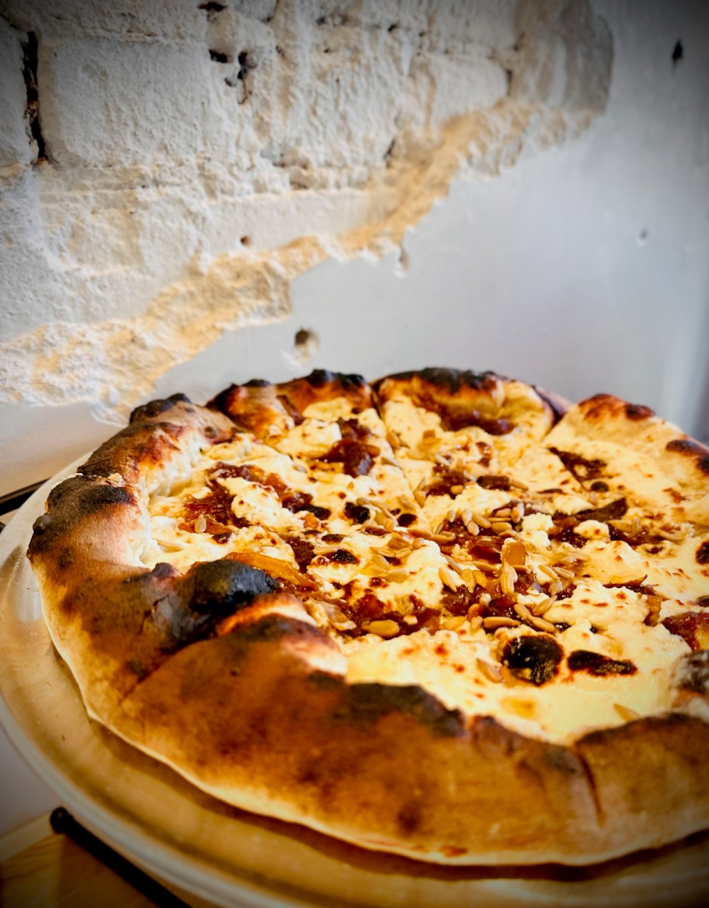 I get a bit irritated when pizza places claim to have a certain type of slice and then fall short of the promise. Don’t tell me it’s a “New York Style” pizza and then underdeliver. If you just call it “pizza” with no qualifiers, I’m less likely to be disappointed with whatever you give me. But, if I’m promised a “New York Style” slice and get anything that falls even fractionally shy of that, I now have reason to be disappointed. The first thing that I love about Rocksteady Pizza Parlour is that they underpromise and overdeliver. Nothing in their name, or on their menu, tells me what style of pizza to expect. Spoiler alert: what they’re serving up is brick oven pizza most closely resembling the beloved Neapolitan style. The pies have gorgeous leoparding with charred black, bubbly crusts–yet the dough is pillowy, light, and indisputably delicious. The ingredients are high quality. The sauce is simple and pure. The care and craftsmanship that goes into these pies is apparent right from the jump–but I’m getting ahead of myself.