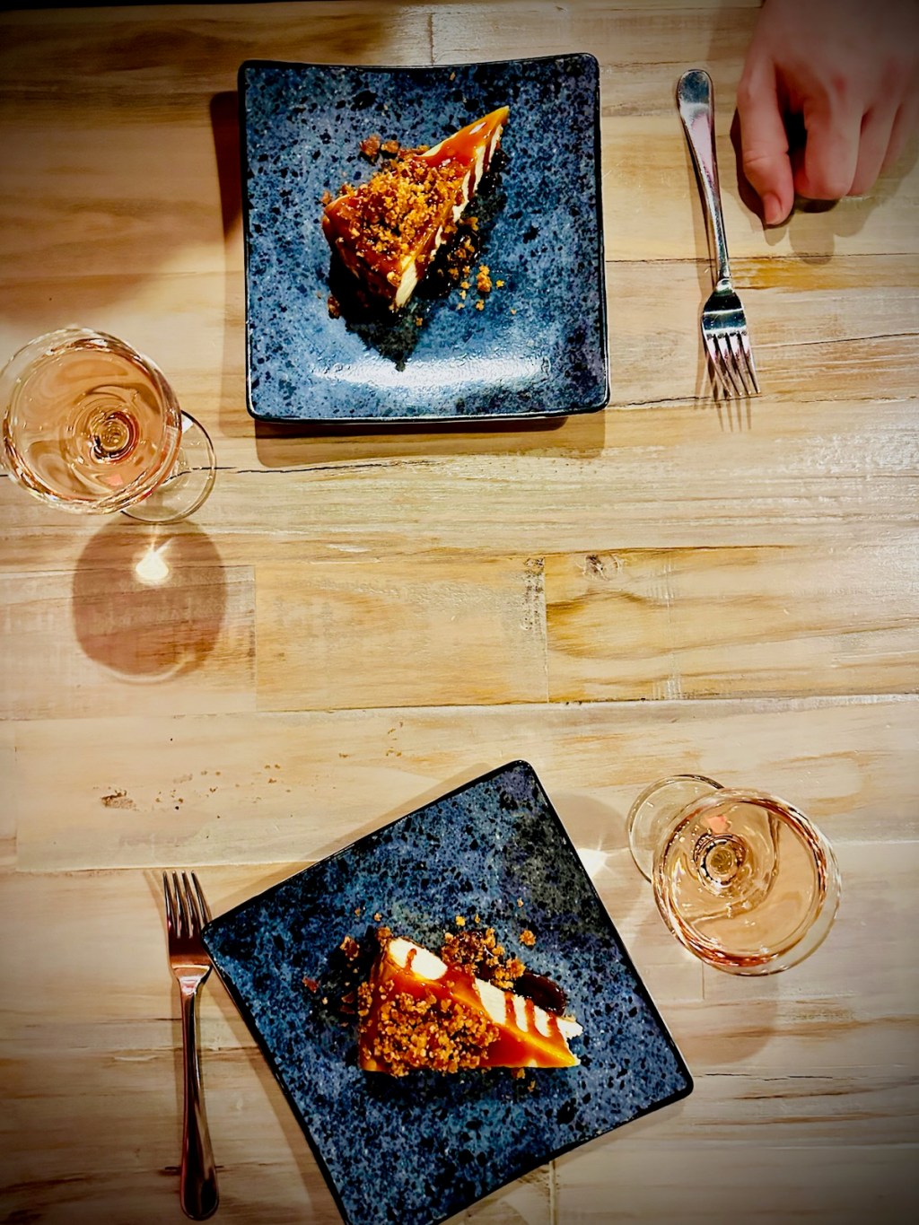So, I know that I said the salmon was my favorite plate of the evening. But, what if I lied? Chef Cam crafted a Due Crema Cheesecake with burnt honey caramel and pine nut brittle. This thing rocked my fucking world. I’m a nice girl, but I’m also a bitch. I can be both at the same time: I checked the rule book and it’s allowed. I have strong opinions on cheesecake and one of those opinions is that most of the shit people serve up and refer to as “cheesecake” is actually just some garbage monstrosity of cheap cream cheese and too much sugar. People who make bad cheesecake should be ashamed of themselves. Also, they should stop. I don’t trust many people who say they’re going to serve me cheesecake. If someone says they’re going to give me a slice, my brain immediately wants me to ask, “Are you sure?” If it wasn’t purchased on Flatbush in Brooklyn, how do I know it’s good? Enter Chef Cam with the most divinely creamy, silky, stunning cheesecake I’ve ever enjoyed. Fuck Flatbush. Fort Wayne is now officially where you can find the ultimate cheesecake indulgence. What Chef Cam has crafted puts all other cheesecakes to shame: a cheesecake so creamy it’s almost otherworldly. Did Chef Cam really make this or was it crafted by the gods? I’m not necessarily buying that any mere mortal could create something so divine. To top, a burnt honey caramel. Now, honey is sweet by nature. Burnt things tend to go bitter. So, imagine that you’ve applied heat and caramelized some of the honey’s natural sugar to the point of burning: the end result is a complex, warm, sweet-bitter, ooey-gooey, sticky caramel. And then the man goes and adds pine nut brittle! Earthy, buttery, mildly sweet, perfectly crunchy: the pine nut brittle took an exceptional dessert and made it matchless. Can somebody please give Chef Cam an award or–at very least–a high five and a nice glass of wine? To pair with this masterpiece, the Spumante Brut Rose Timido: a gorgeous pink pour with notes of fresh flowers and strawberries. This is the bottle that you give to someone who you have a crush on. It tastes like young love and summer nights: nostalgic but new, all at once. I can’t imagine a more dreamy way to end an evening.